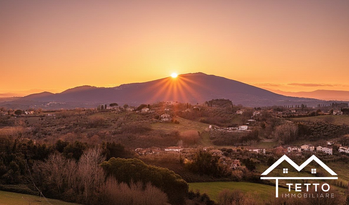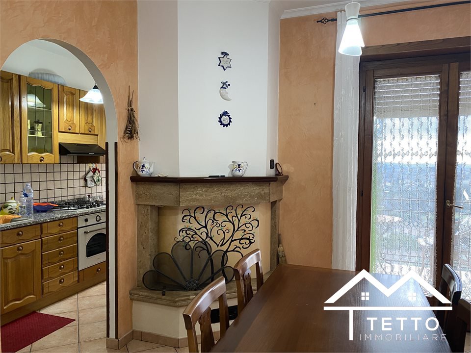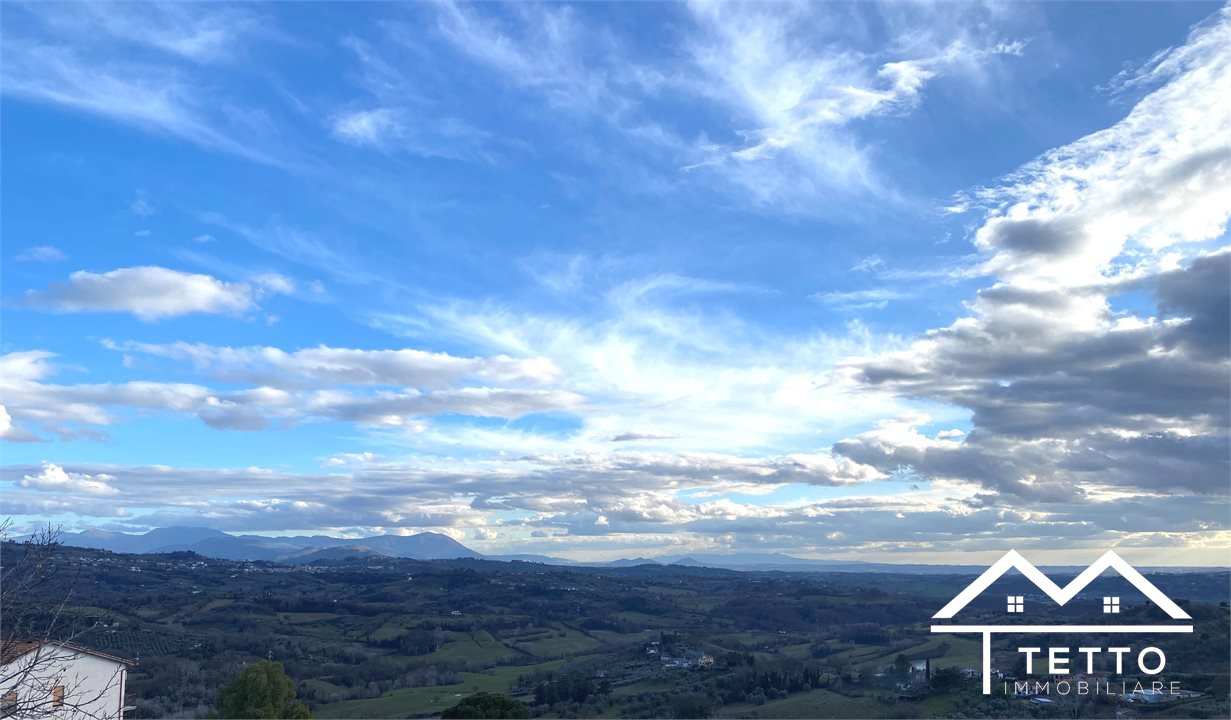 The entrance leads to the living room with dining area, embellished with a fireplace and access to the panoramic terrace with open views of the valleys of the Sabine hinterland and Mount Soratte.