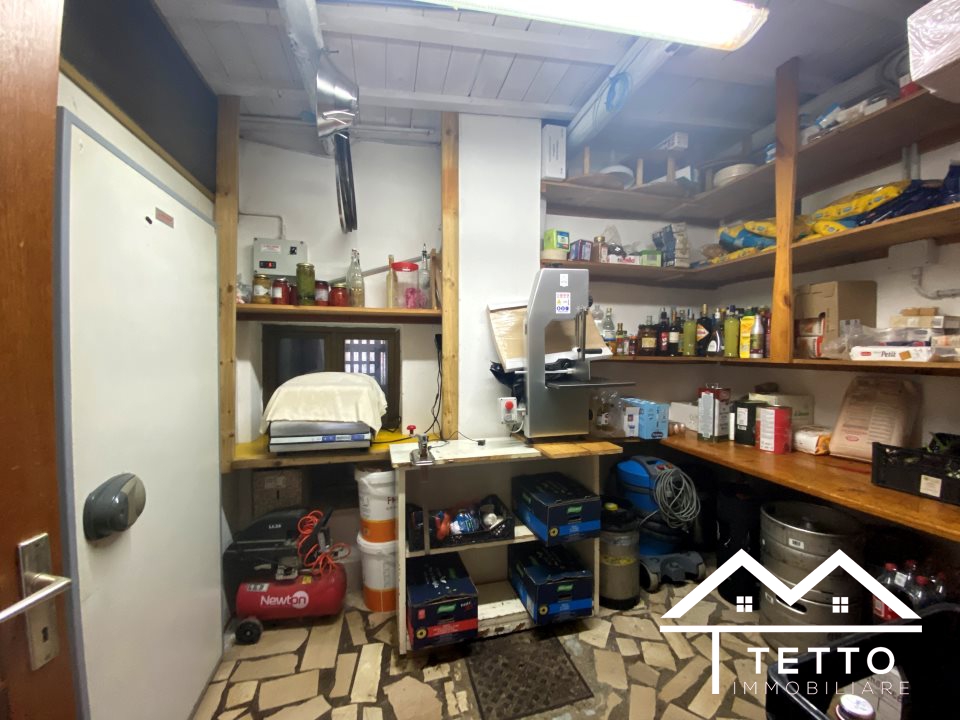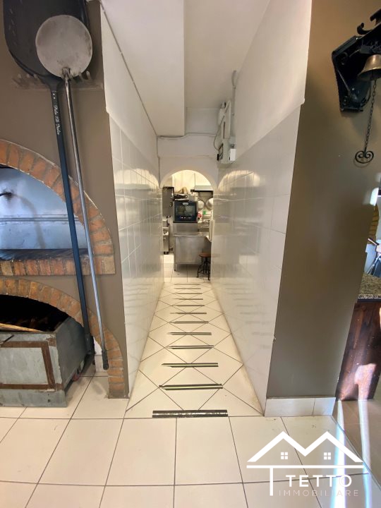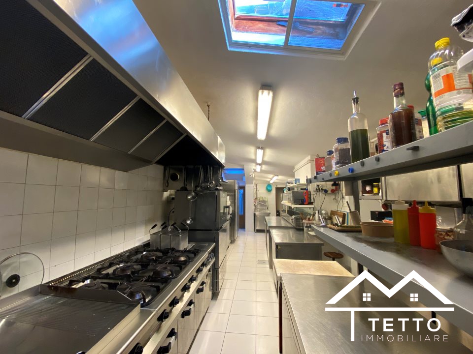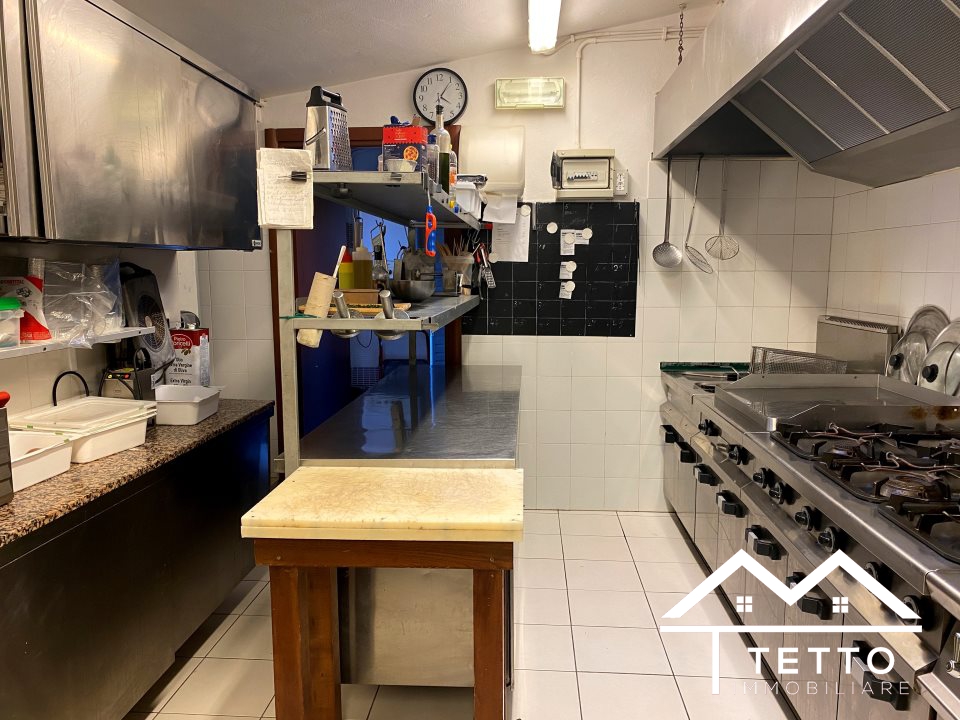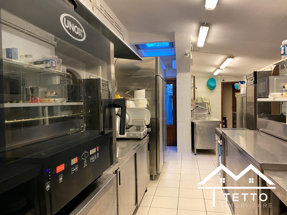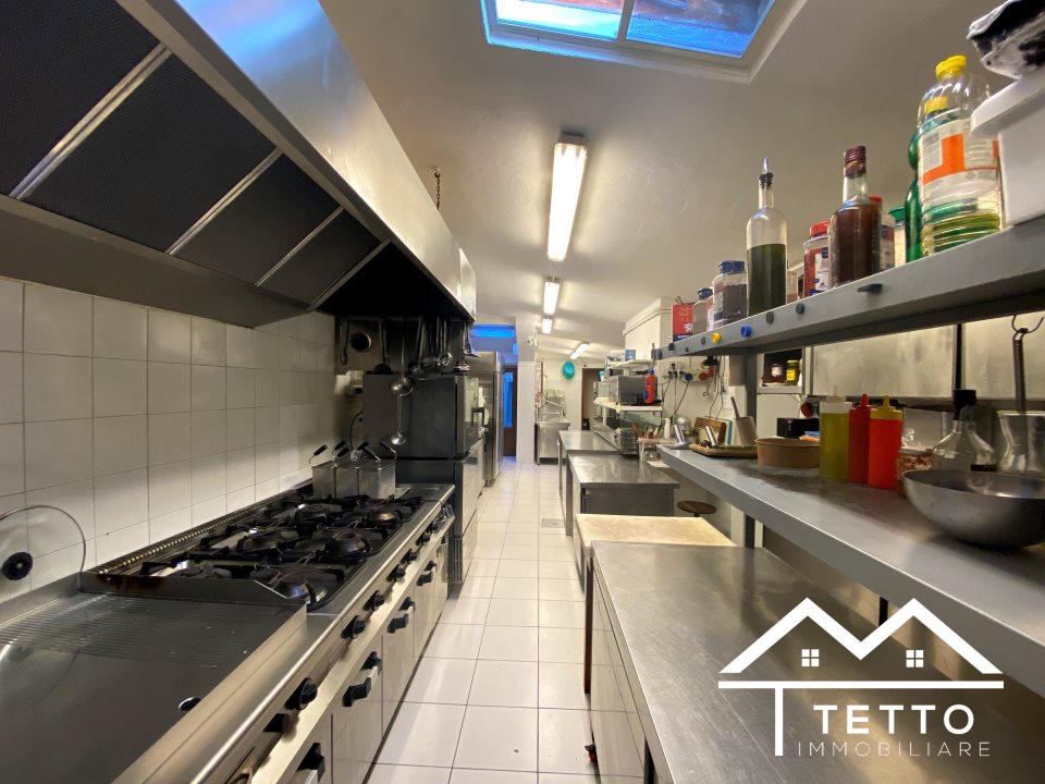 due ampi ambienti comunicanti con fuochi, laboratorio, dispensa, spogliatoi e area magazzino.